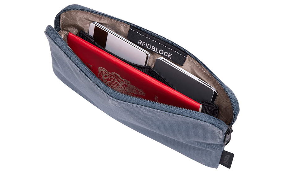 Προστατέψτε το διαβατήριό σας, τις πιστωτικές κάρτες και τα προσωπικά σας στοιχεία στην αποσπώμενη θήκη με φερμουάρ που μπλοκάρει την RFID.