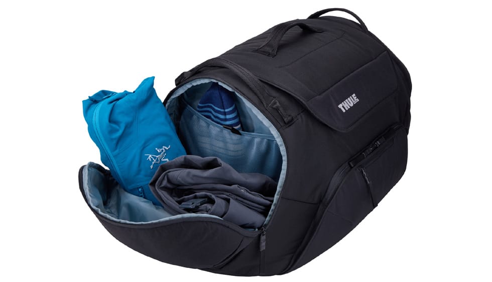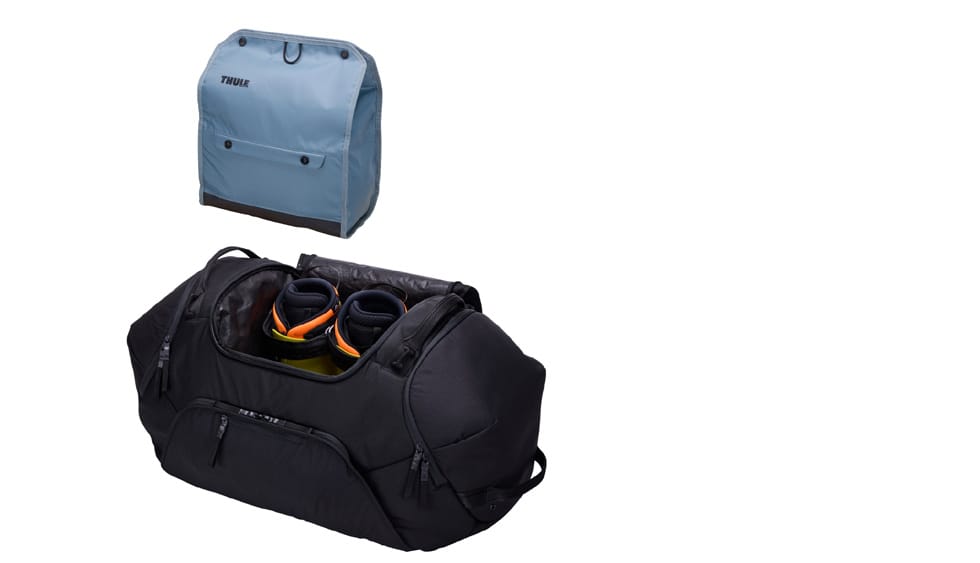 Ο χώρος για τις μπότες διαθέτει ακόμη και ένα χαλάκι στήριξης, ώστε τα πόδια σας να μην βρέχονται όταν αλλάζετε τις μπότες του σκι. Ο χώρος για τα γυαλιά προστατεύει τους φακούς σας, ενώ η αφαιρούμενη τσάντα στεγνού χώρου διατηρεί τα βρεγμένα αντικείμενα χωριστά από τα στεγνά. Ακόμα και με τον εξοπλισμό σκι ή snowboard σας συσκευασμένο, η ευρύχωρη τσέπη στο τέλος έχει αρκετό χώρο για παντελόνι σκι, ένα μπουφάν ή ρούχα μετά το σκι. Ο ιμάντας διέλευσης αποσκευών σάς βοηθά να στερεώσετε τη τσάντα μεταφοράς στην τσάντα μεταφοράς σκι Thule RoundTrip, ώστε να μπορείτε να ταξιδεύετε αβίαστα σε ένα αεροδρόμιο.